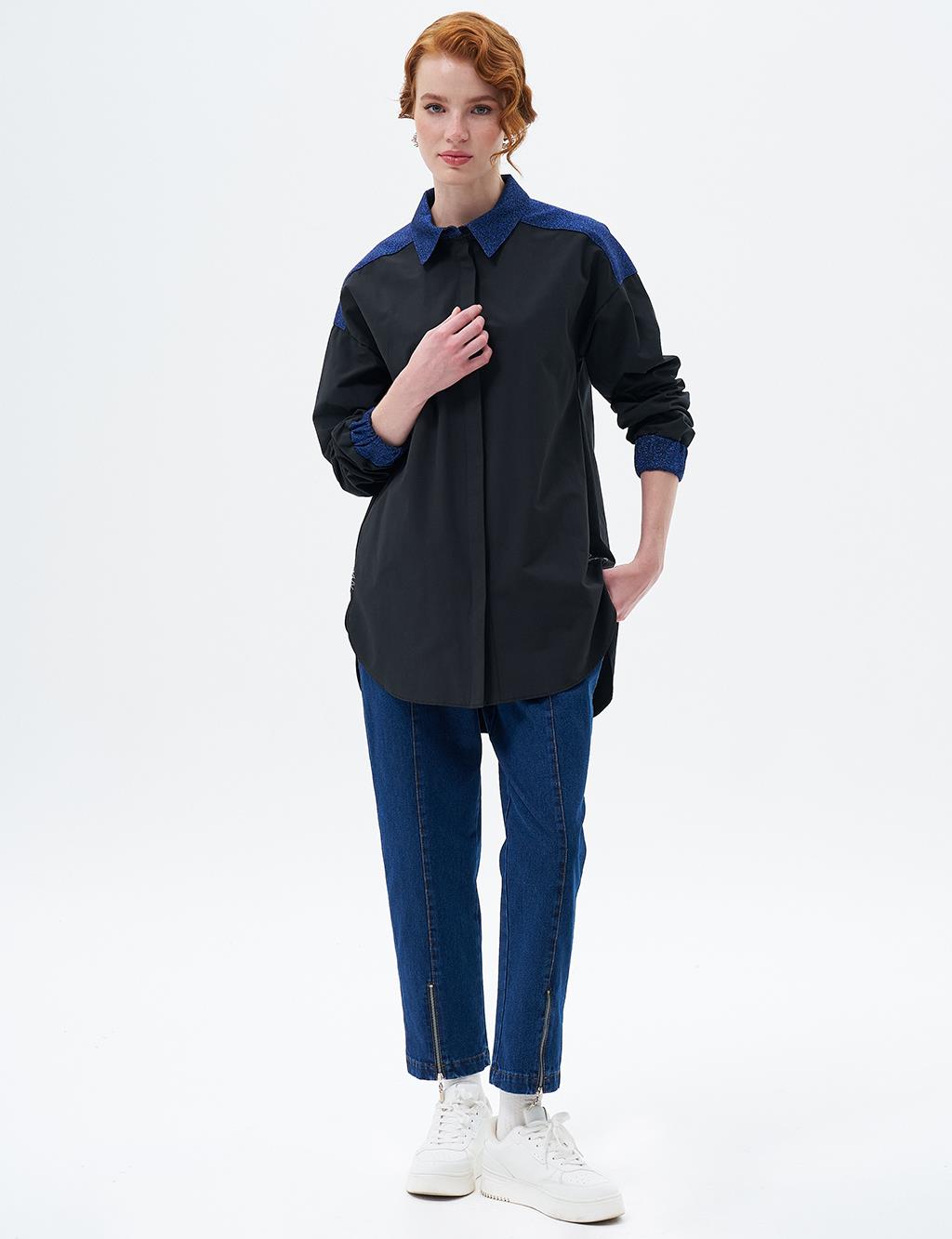 The KYR Concealed Button Fabric-Trimmed Poplin Blouse combines elegance and style with its poplin fabric. Perfect for seasonal transitions, this design can be ideally paired with pants, denim, skirts, earrings, and accessories for a chic look.