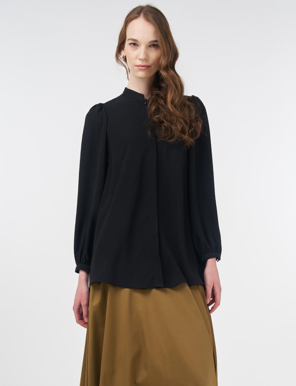 Mandarin Collar Asymmetrical Cut Blouse Black