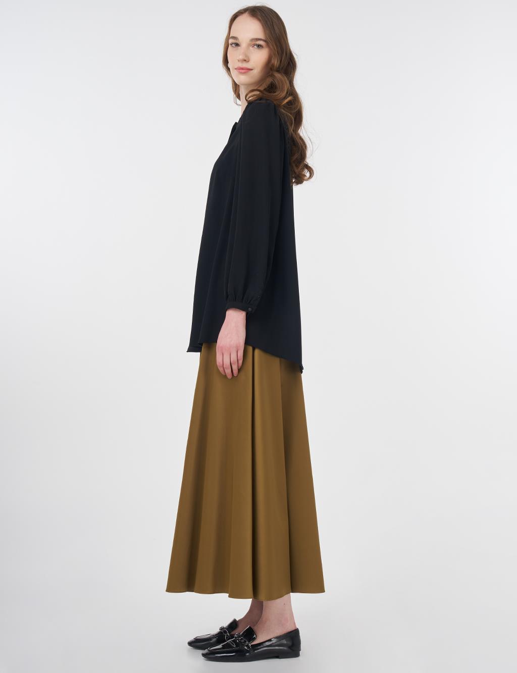 The Kayra Mandarin Collar Asymmetrical Cut Blouse stands out with its elegant look, making it ideal for both daily wear and special occasions. For a perfect look, you can pair it with pants, skirts, earrings, or accessories.