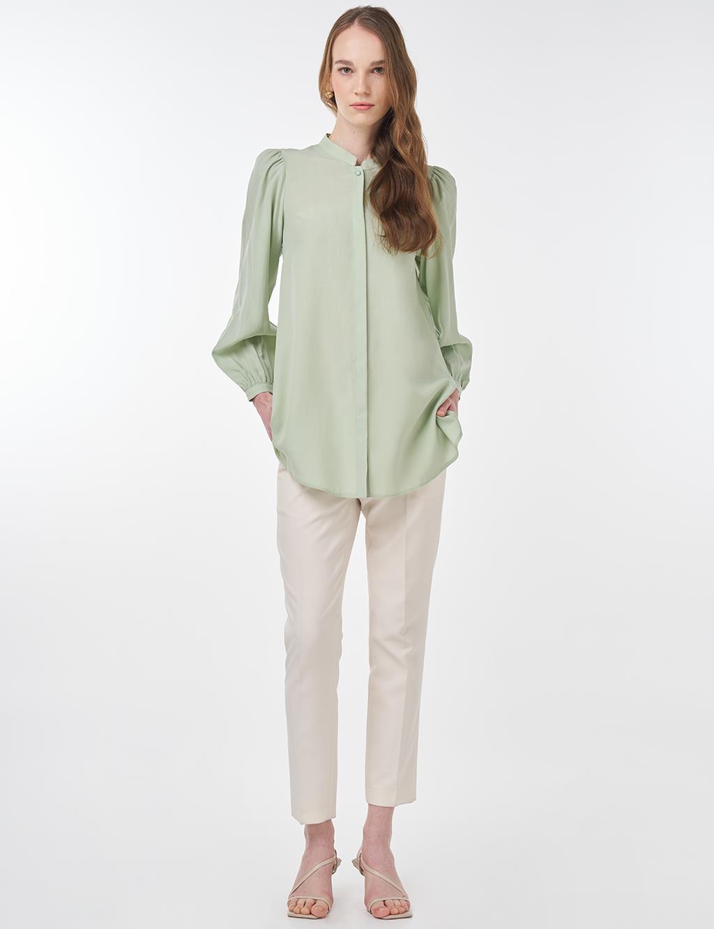 Mandarin Collar Asymmetrical Cut Lyocell Blouse Mint Green
