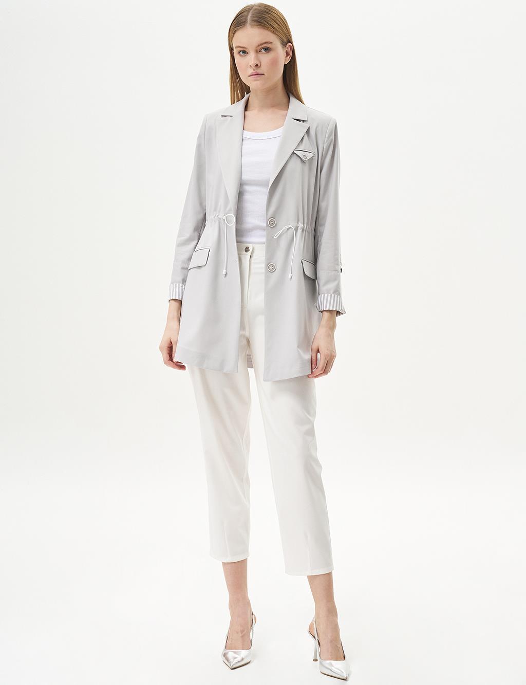 Buttoned Waist Gathered Jacket Gray