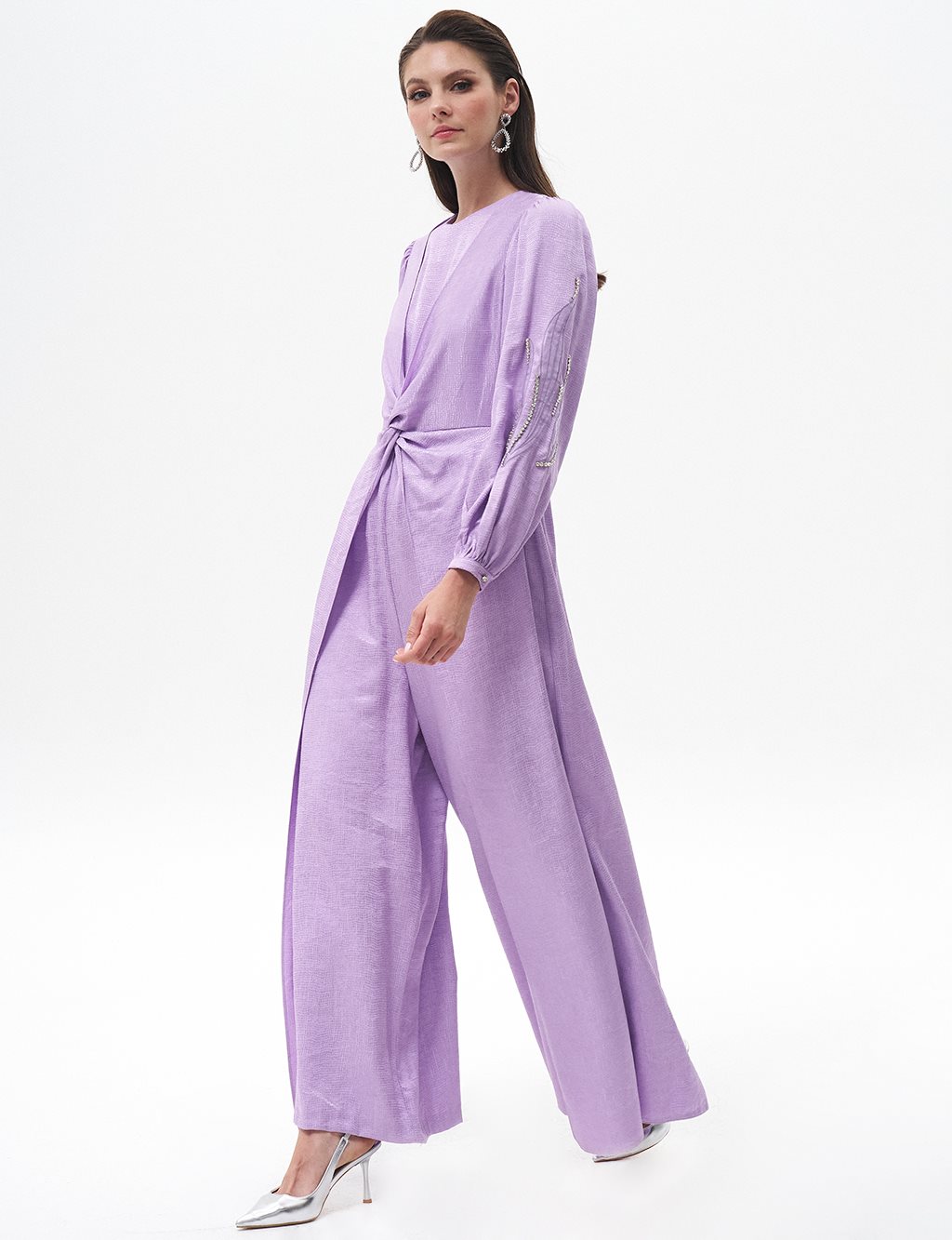 The Kayra Waist Detailed Embroidered Jumpsuit stands out with its comfort and elegance. Enhanced by the waist detail, this design can be complemented with high heels and minimal accessories. You can opt for this design, the savior piece of the spring-summer season, for events or special occasions.