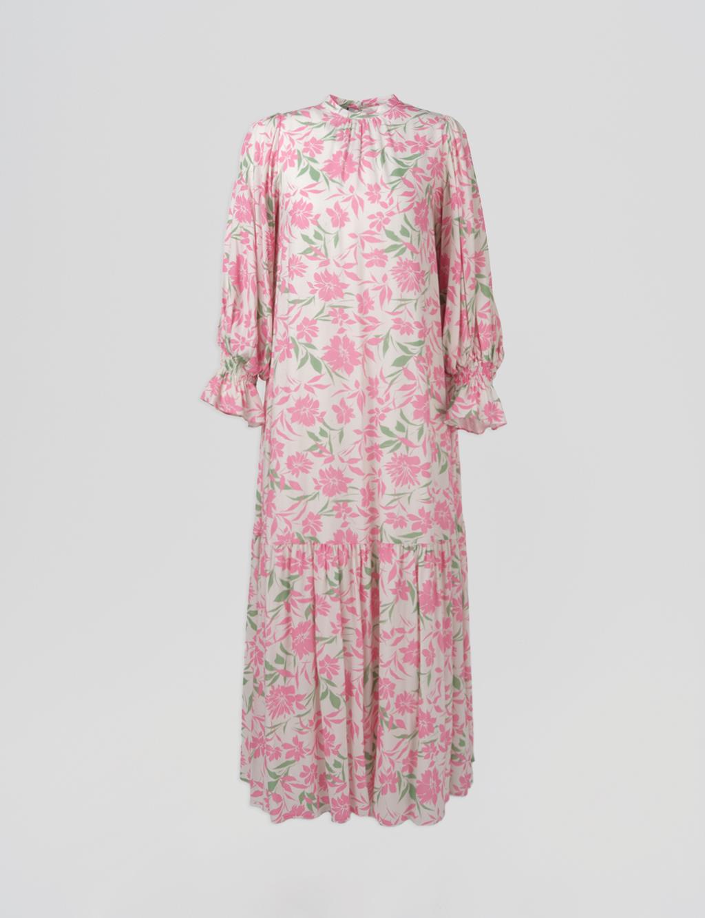 Floral Patterned Viscose Dress Pink