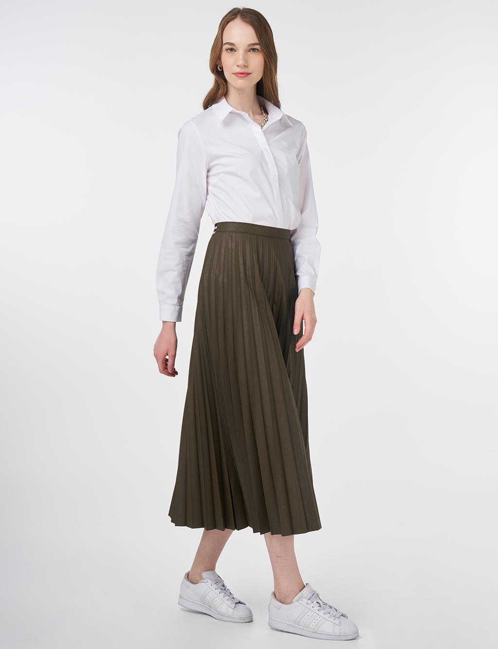 The KYR Elasticated Pleated Faux Leather Skirt is one of the most-loved pieces to complete your outfits! Perfect for a variety of styles, from daily wear to weekend looks, it pairs beautifully with knit tunics, basic shirts, or accessories to create a versatile and stylish combination.