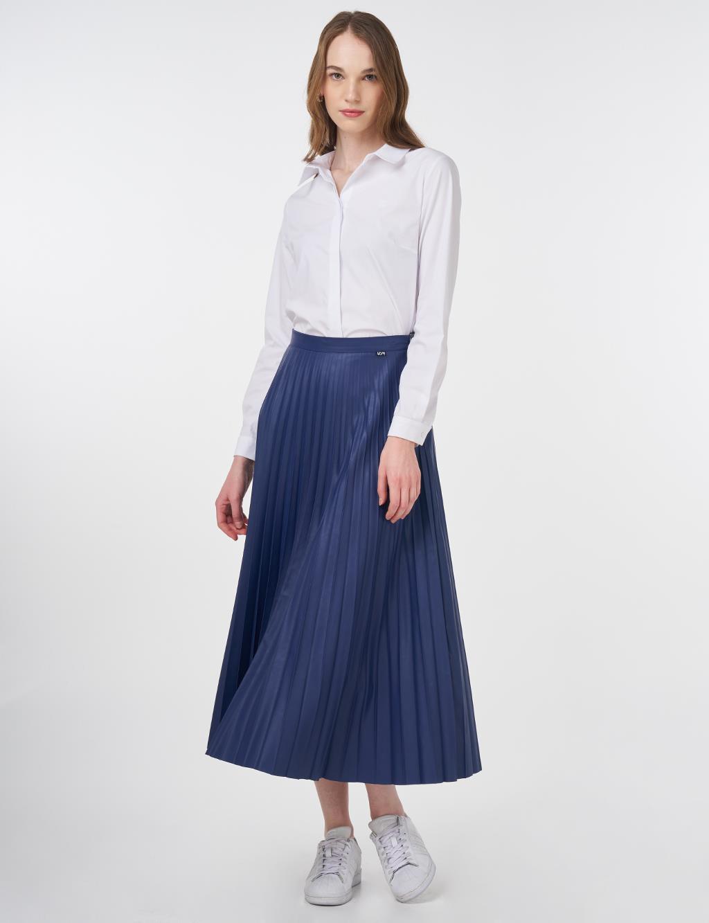 Elasticated Pleated Faux Leather Skirt Royal Blue