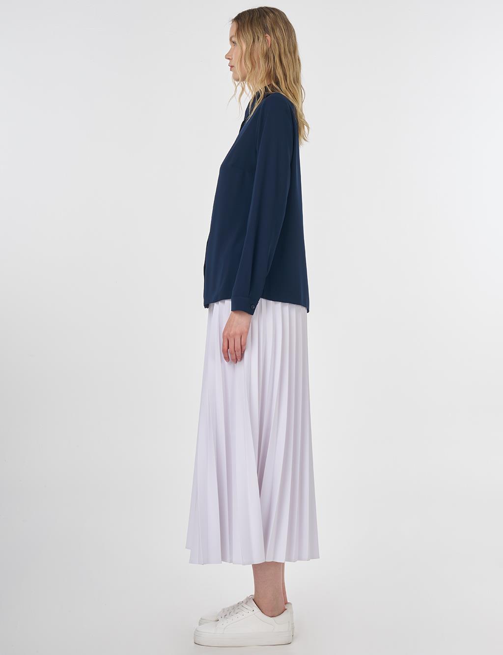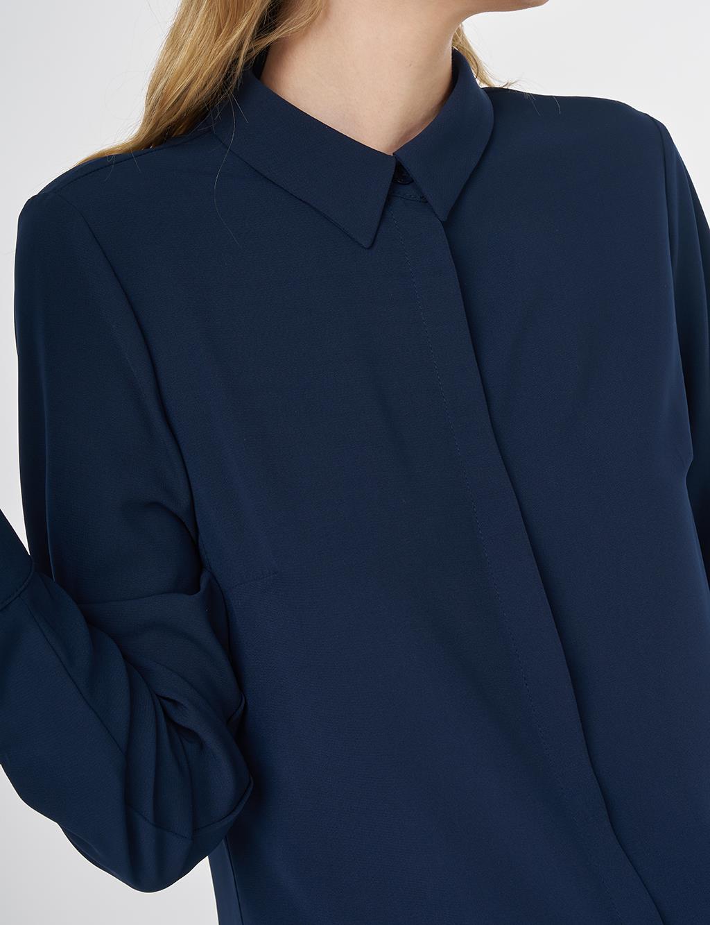 Concealed Placket Blouse Navy Blue