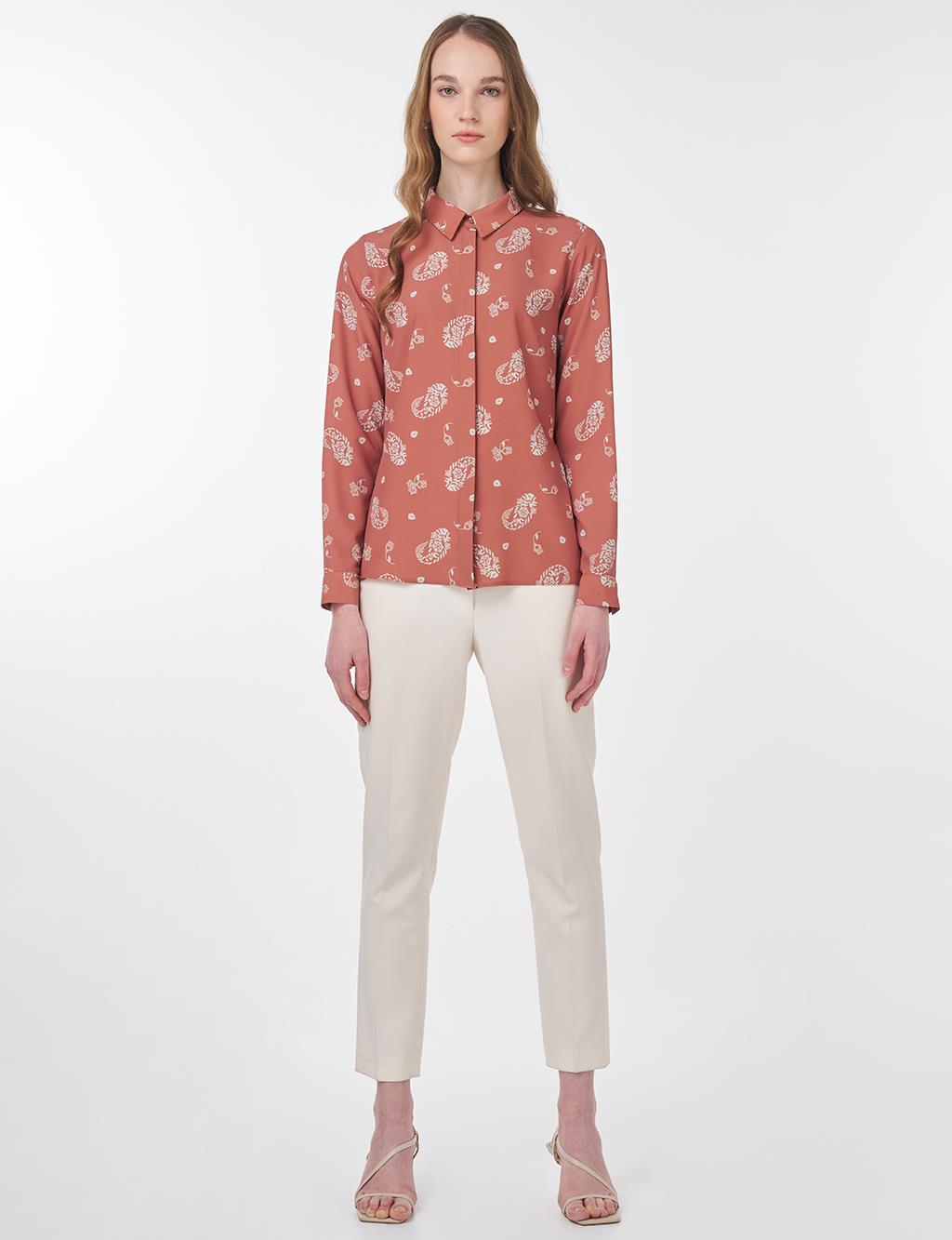 The Kayra Printed Basic Blouse combines comfort and style. With its printed texture, this design offers a modern and chic look. You can enhance it with trousers, earrings, or accessories for a complete outfit.