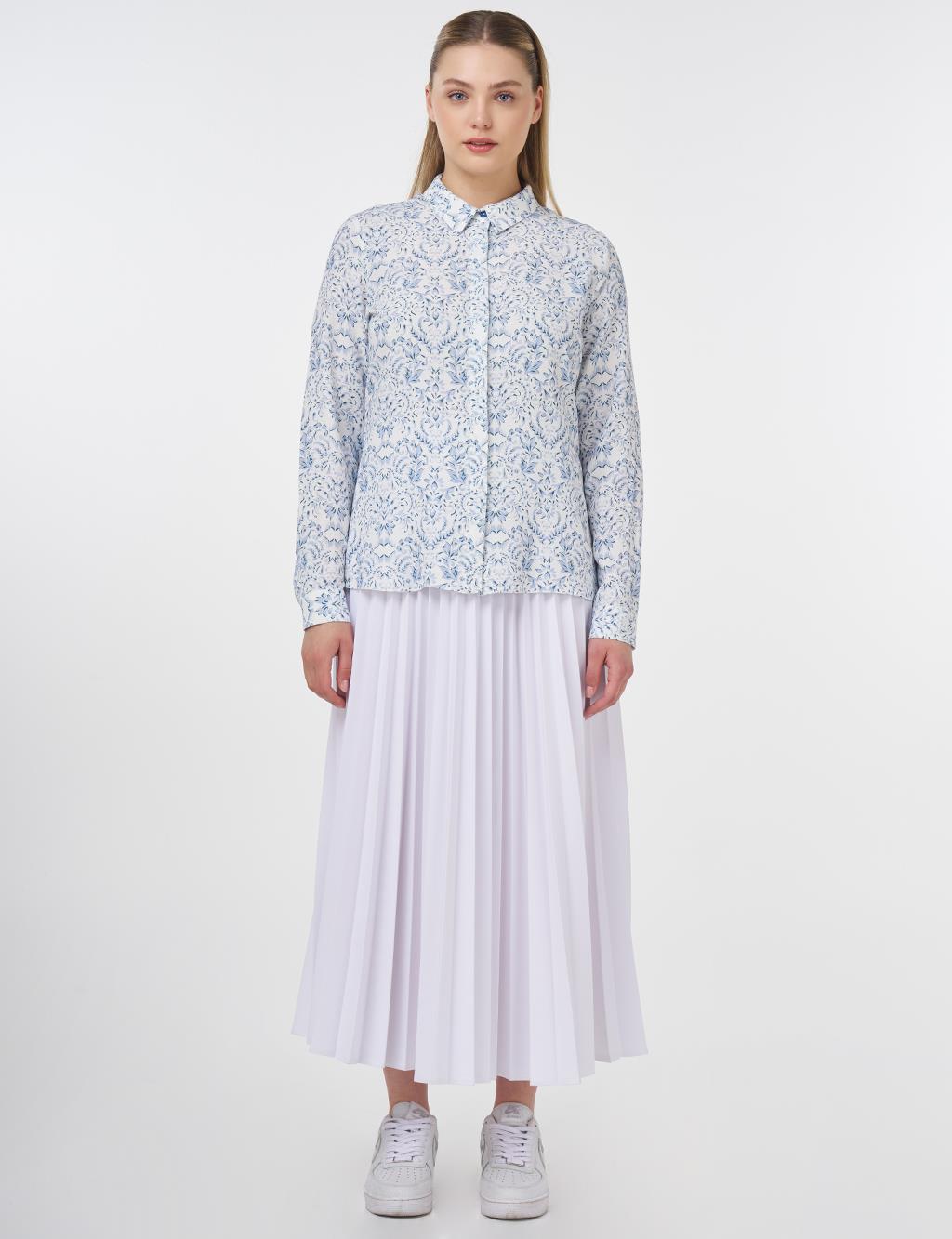 The Kayra Floral Patterned Viscose Blouse stands out with its elegant look. Thanks to its soft texture and breathable fabric, it is suitable for both everyday and office styles. You can achieve an ideal look by pairing it with skirts, earrings, or complementary accessories.