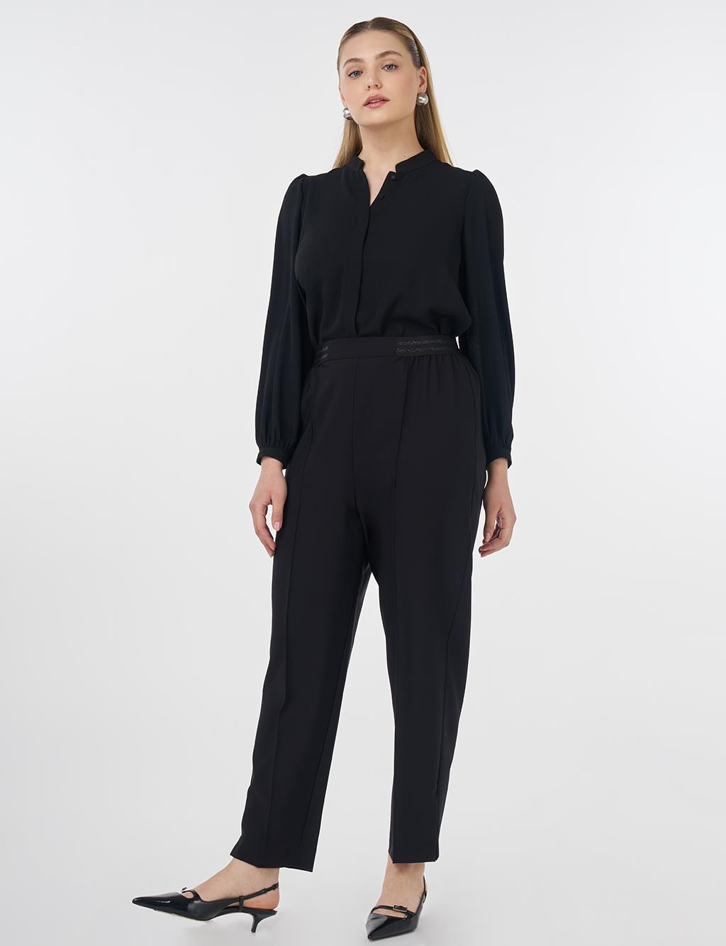 High-Waist Pants with Topstitched Seams – Black