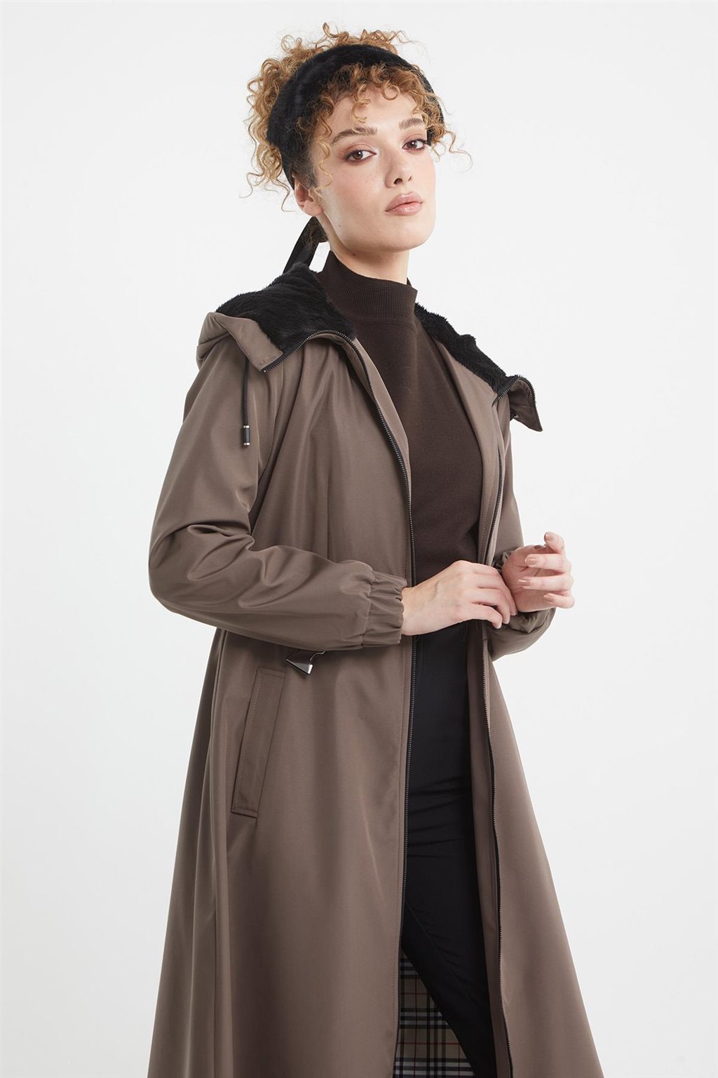 The Hooded Belt Detail Coat stands out with its sporty and functional design. The zipper detail adds a modern touch, while the hooded structure adapts to changing weather conditions. It can be easily paired with denim, sweatshirts, pants, or knitwear for both everyday and weekend outfits.