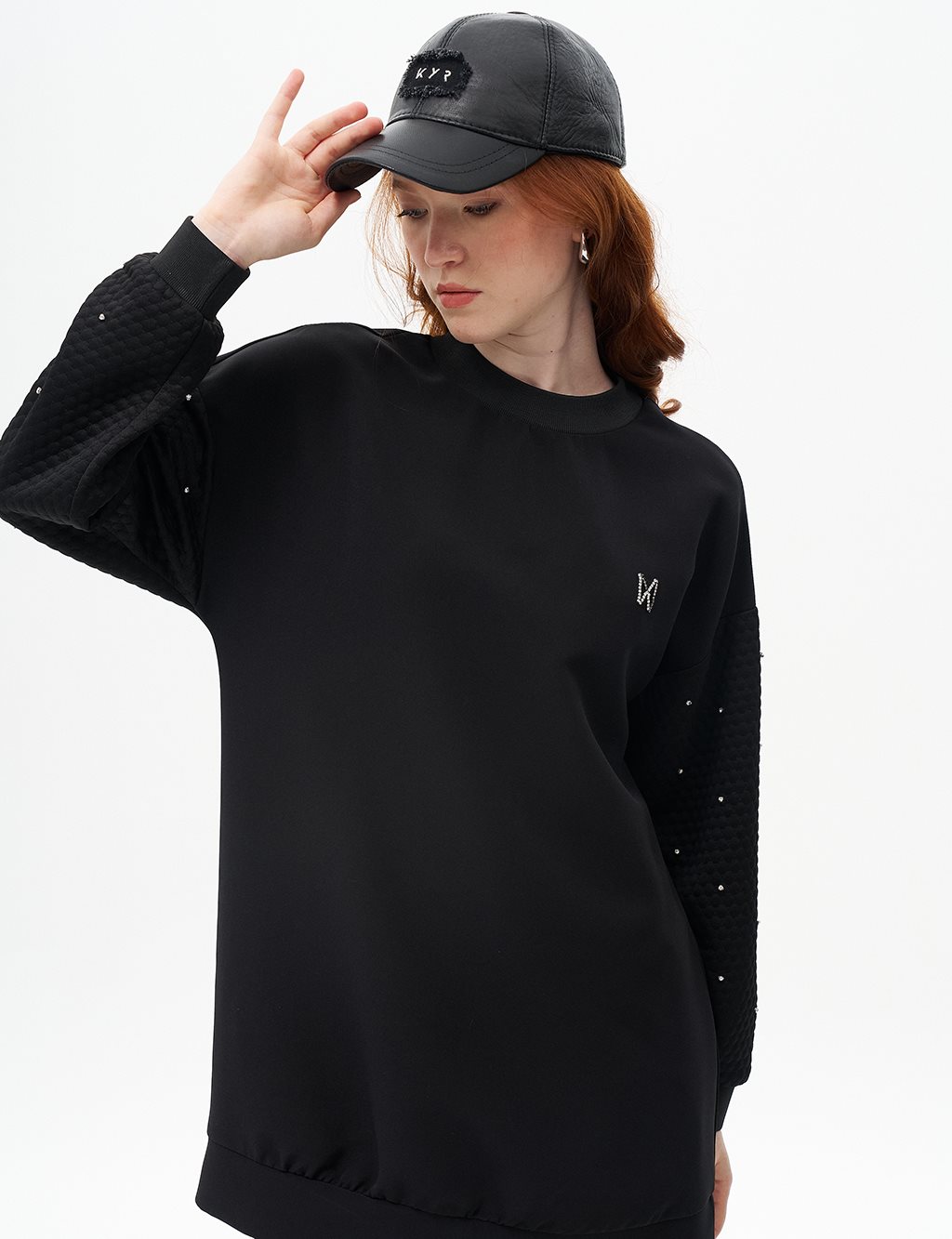 The KYR Crew Neck Stone-Embroidered Sweatshirt offers a stylish and comfortable design. With the combination of different textures, this piece brings a modern twist to casual elegance. Its ribbed mix provides flexibility and comfort for the wearer. Ideal for daily styles, it can be paired with denim or sneakers for a complete look.