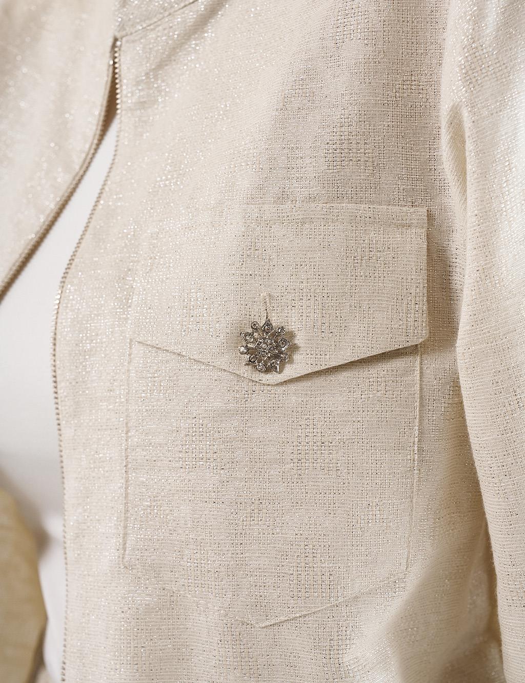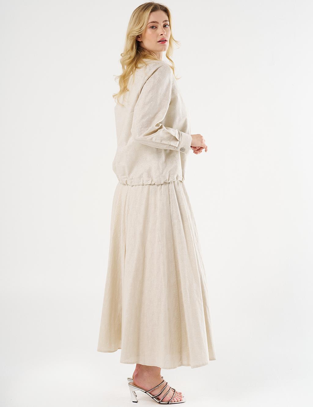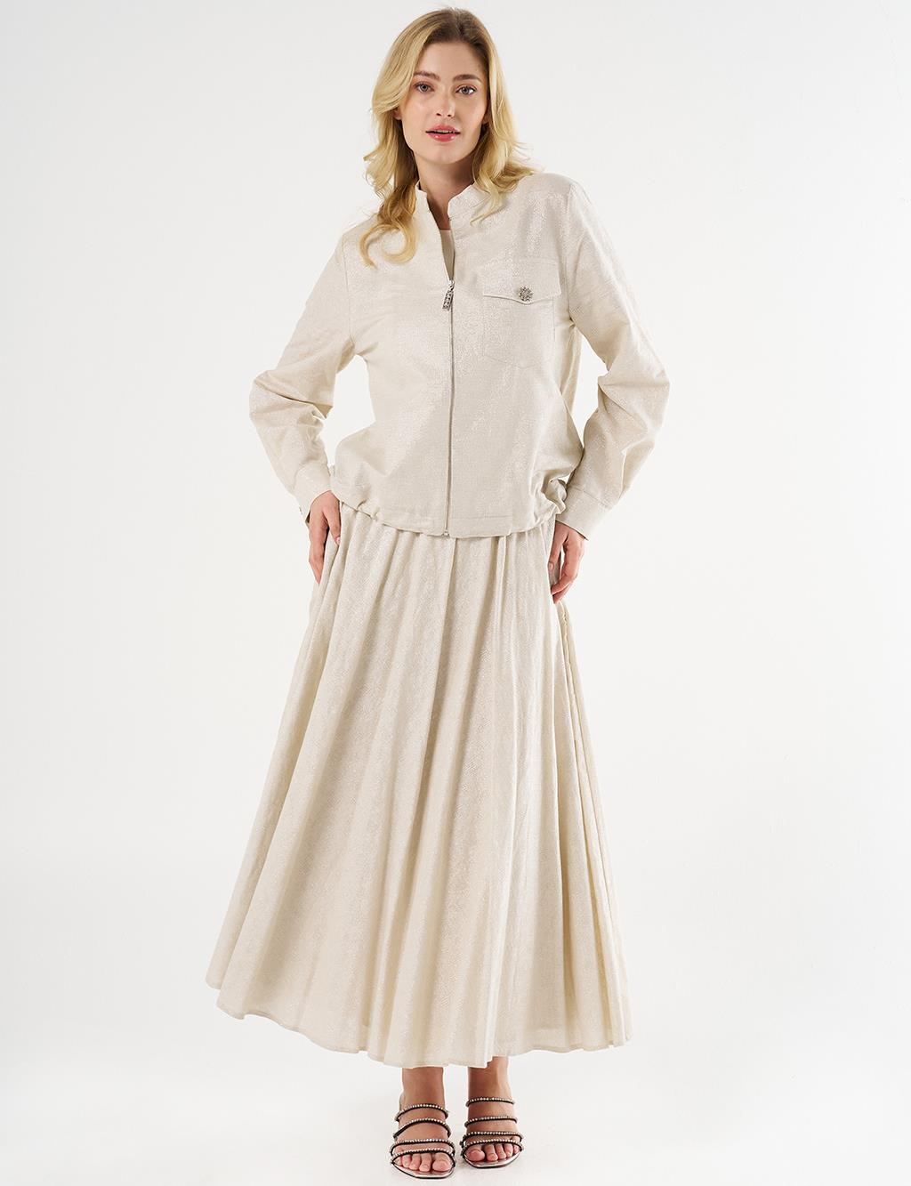 Jacquard Skirt Set with Shiny Stones in Cream