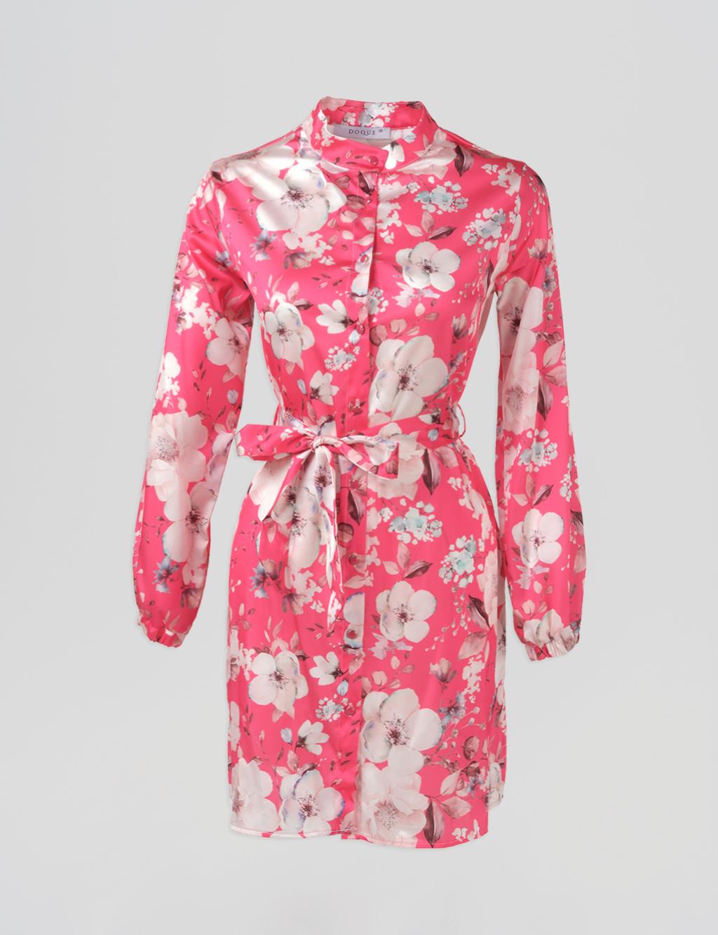 The Floral Patterned Belted Tunic stands out with its vibrant design. Accentuated with a waist belt, this tunic is a great option for everyday wear. You can complete the look with trousers or earrings.