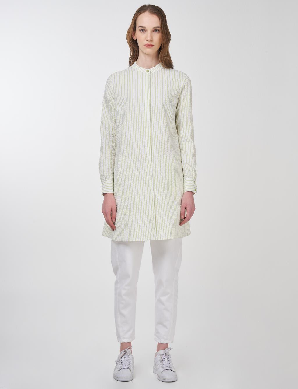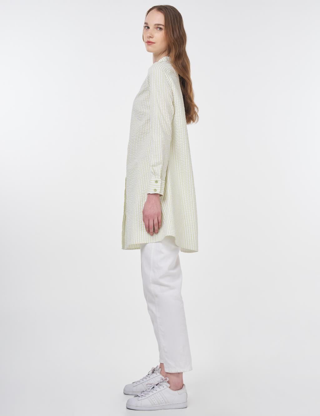 Mandarin Collar Cotton Basic Tunic Pistachio Green