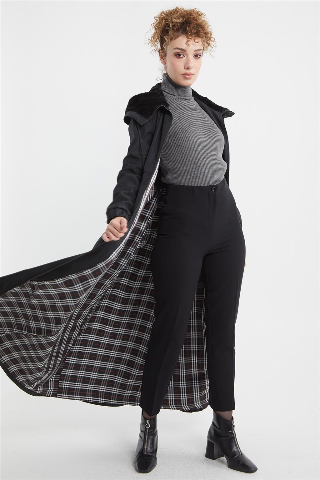Peluş Detaylı Pardesü, özel tasarımıyla öne çıkmaktadır. Bel kısmında bulunan zarif tokalı kemer tasarıma hareket katmakla birlikte şık bir görünüm de sağlamaktadır. Spor-şık kombinlerinizde ideal bir tercih olan bu tasarımı; triko tunik, pantolon, denim, tunik ya da aksesuarlar ile destekleyebilirsiniz.
