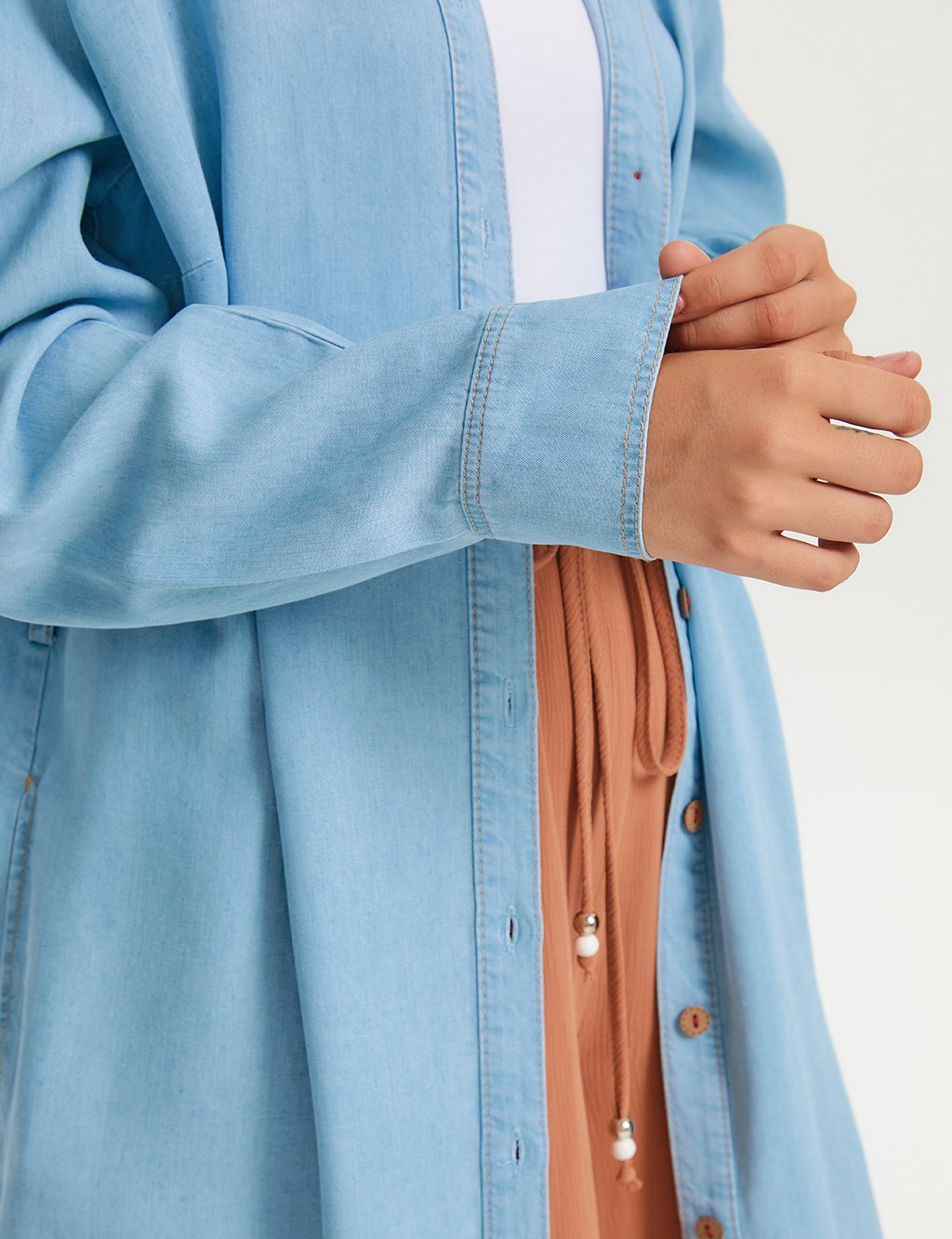 Ahşap Düğmeli Denim Tunik Açık Mavi